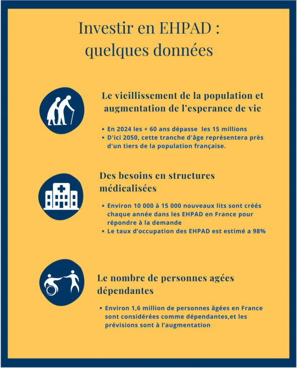 Le vieillissement de la population et le manque structurel de places en EHPAD créent une demande durable et soutenue sur l’ensemble du territoire.
